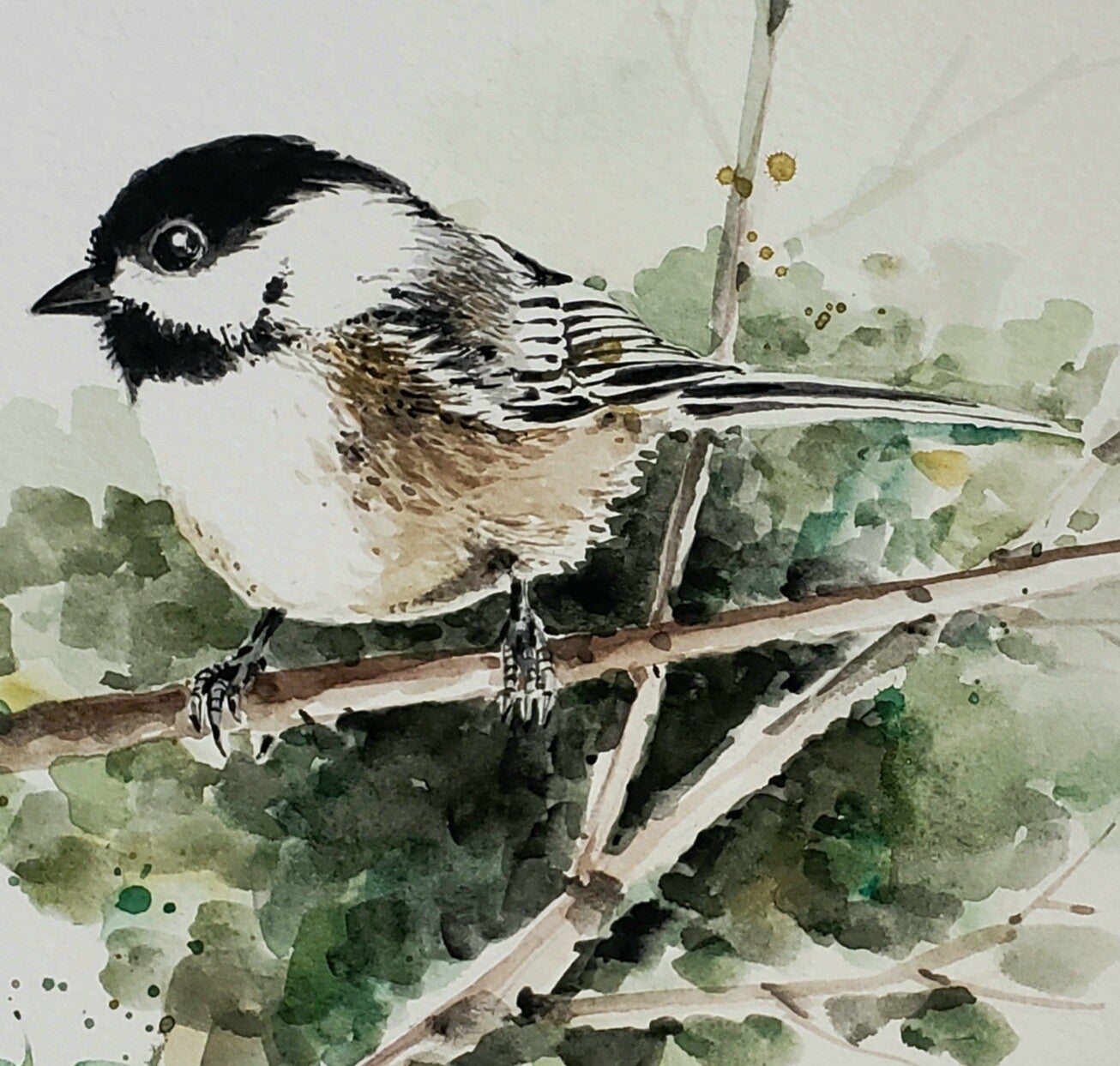 original watercolor painting on 12"x9" cold pressed paper with glass protection and wood frame, total dimension 16"x13"